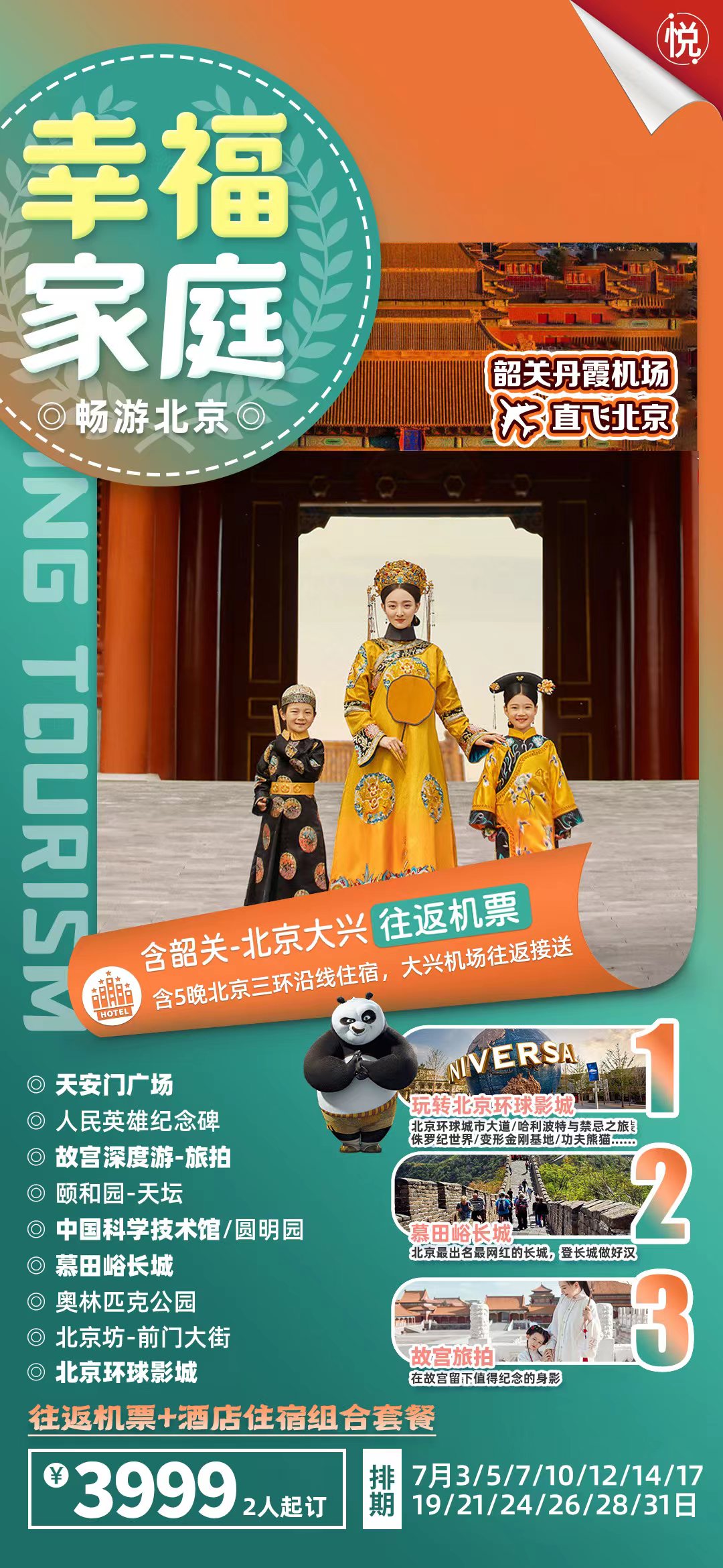 [旅游出行] 8月份韶關(guān)丹霞機(jī)場(chǎng)直飛北京大興機(jī)場(chǎng)往返機(jī)票+三環(huán)沿線網(wǎng)評(píng)三鉆5晚住宿組合自由行套餐 |
